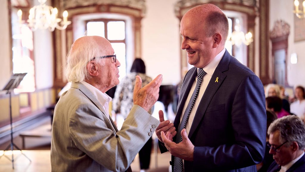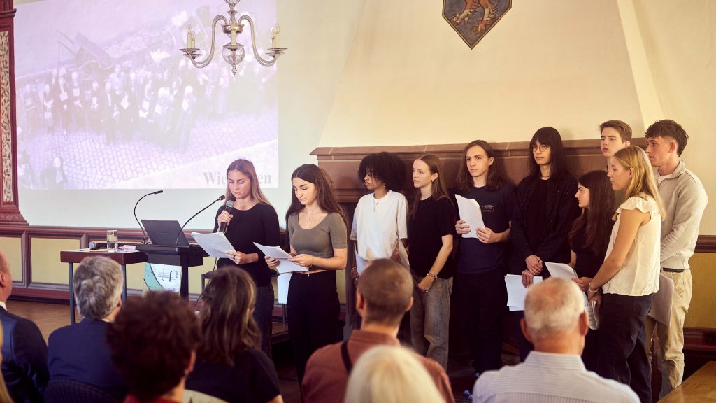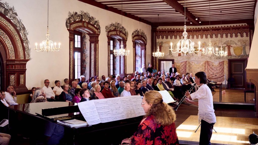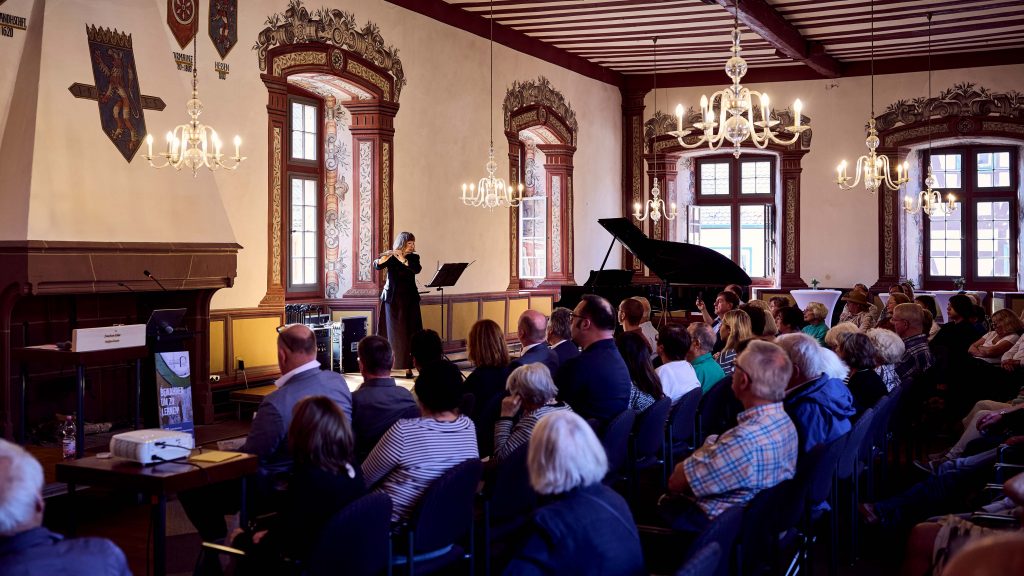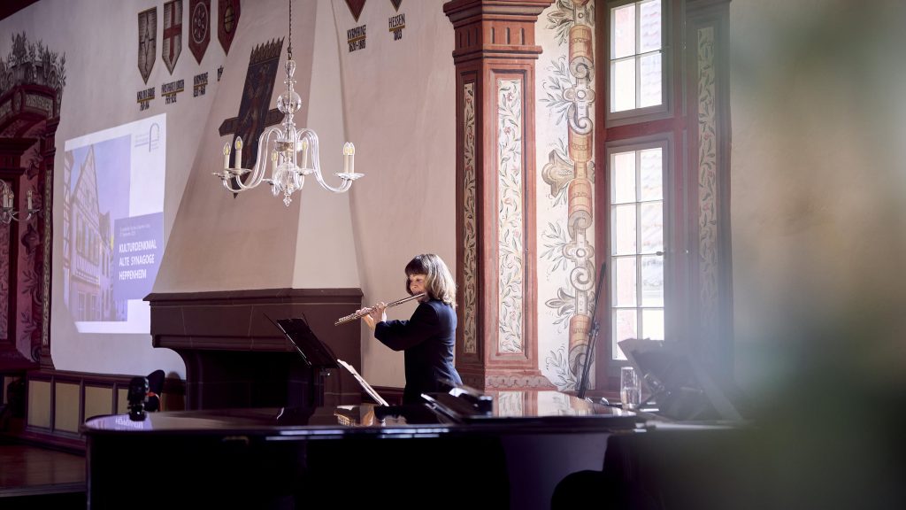 Musikalisch wurde die Veranstaltung im Kurfürstensaal eindrucksvoll begleitet. Die Schüler Jonathan Kaluza (Klavier) und Lukas Römer (Klarinette), beide Preisträger bei Jugend musiziert und dem Mendelssohn-Wettbewerb, gaben feinfühlige Interpretationen, und die Flötistin Svetlana Roginsky bereicherte das Programm mit klassischen jüdischen Liedern, die eine emotionale Brücke zwischen Vergangenheit und Gegenwart schufen.