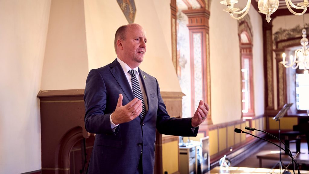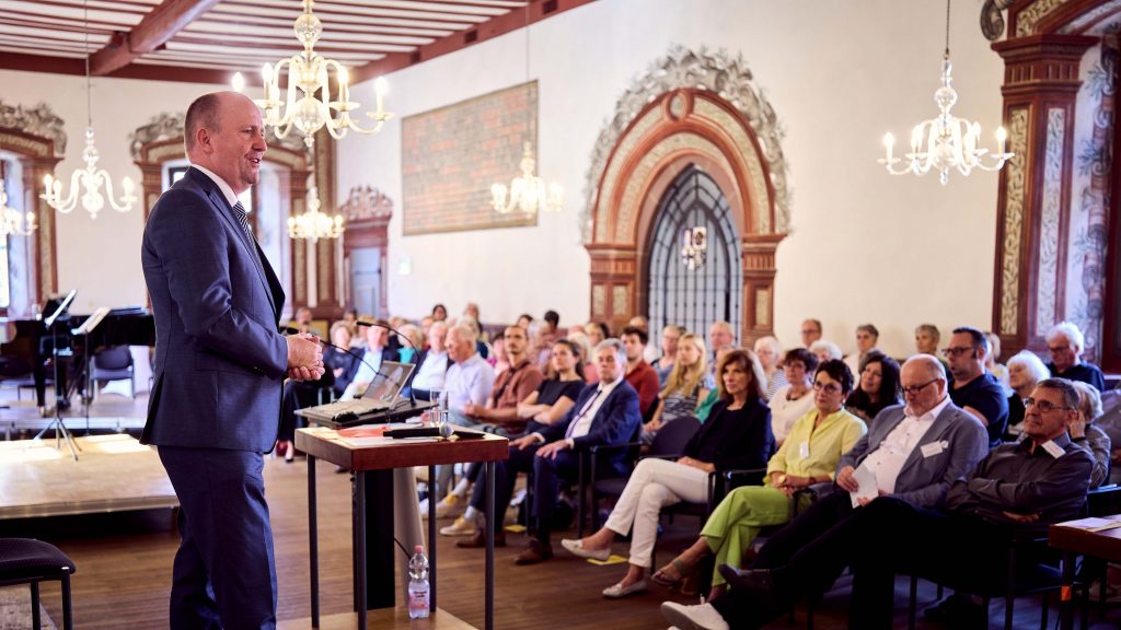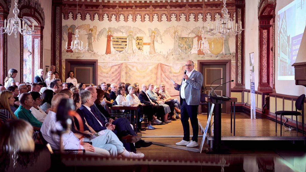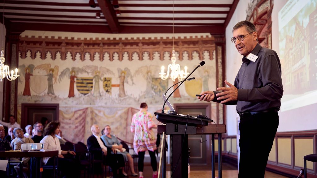 Unter dem Motto „Bewahren um zu Lernen“ stellten wir unser zentrales Ziel vor: die Sanierung des Gebäudes „Kleine Bach 3“ und seine künftige Nutzung als Ort der jüdischen Kultur, des interreligiösen Dialogs und der demokratischen Bildung. Uwe Becker, Beauftragter der Hessischen Landesregierung für Jüdisches Leben und den Kampf gegen Antisemitismus, unterstrich die Bedeutung, jüdisches Leben zu schützen und Antisemitismus entschieden entgegenzutreten.